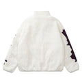 Stay warm this winter with this Lamb Wool Stitching Cotton-Padded Coat, designed in a retro American style. This loose-fitting cardigan features an embroidered skeleton pattern and a unique towel-stitched design, giving it a trendy and edgy look. Available in classic black and white colors, it's perfect for teenagers looking to stand out.