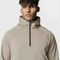The Men's Outdoor Sports Half Zipper Hooded Jacket is a versatile and practical choice for fitness enthusiasts and outdoor adventurers alike. Crafted for spring, autumn, and winter wear, this jacket combines functionality with comfort. Its solid color design offers a sleek, minimalistic look that easily pairs with any outfit, while the half zipper adds a sporty touch.