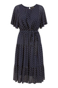 Yumi Navy Dot Print Mesh Stretch Midi Skater Dress